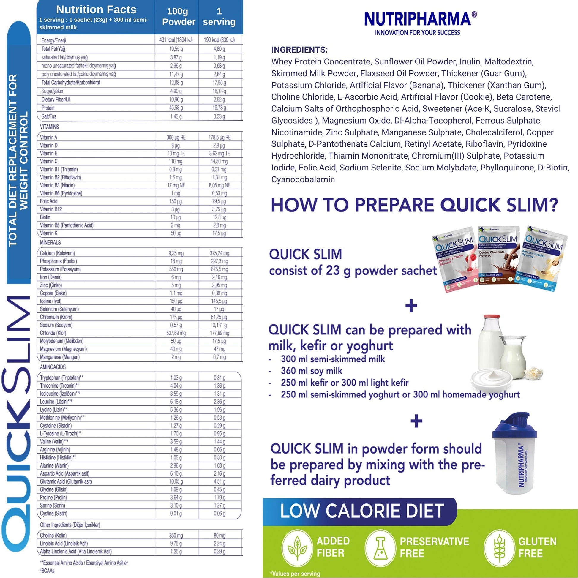 Quick Slim ist ein Mahlzeitenersatz-Shake zur Gewichtsabnahme, der genau die Nährstoffe enthält, die Sie täglich benötigen.