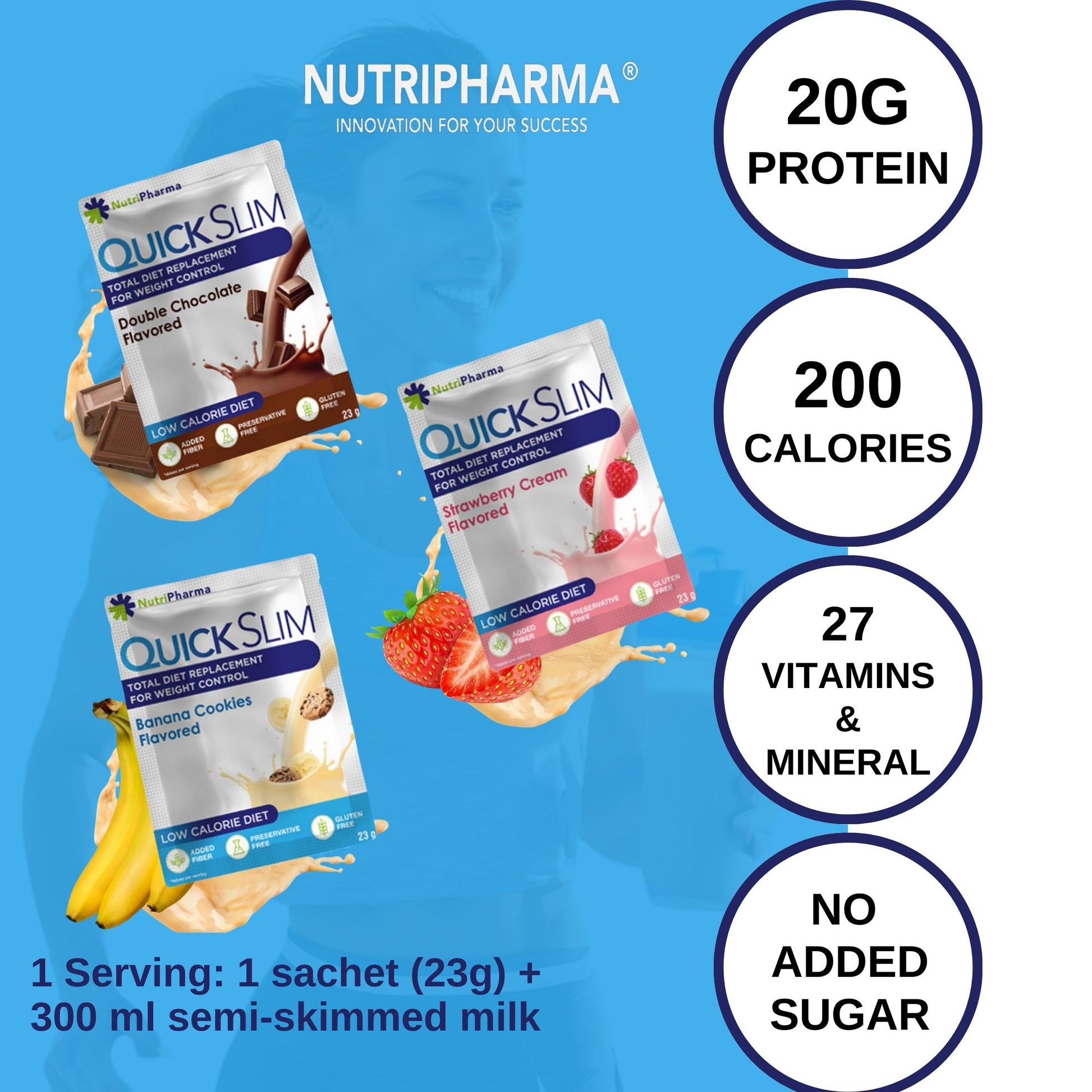 Quick Slim ist ein Mahlzeitenersatz-Shake zur Gewichtsabnahme, der genau die Nährstoffe enthält, die Sie täglich benötigen.
